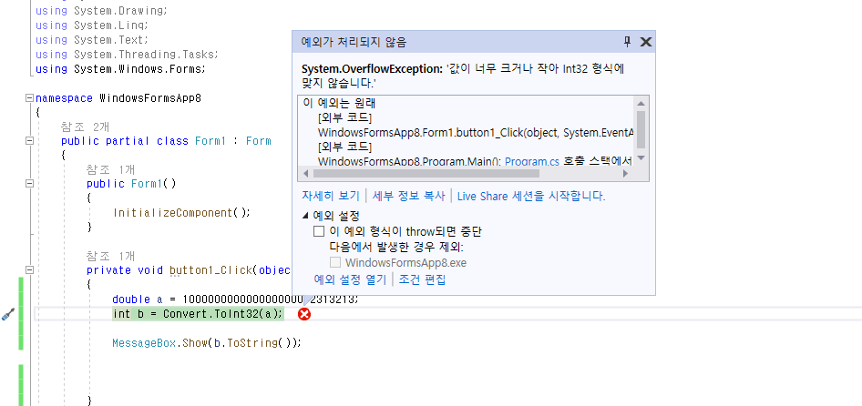 참고로 Convert.ToInt32(대상값) 은 int 형식으로 변경한다는 의미이다.
