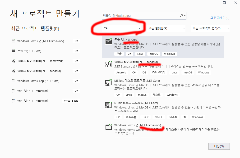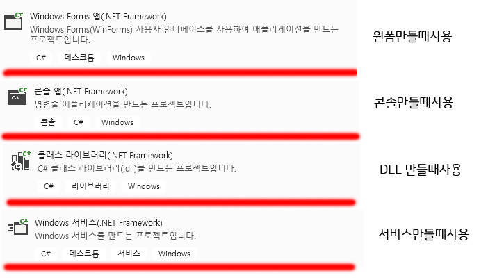 결론적으로 우리는 .net framework 가 붙은 걸로만 생성하면된다.
