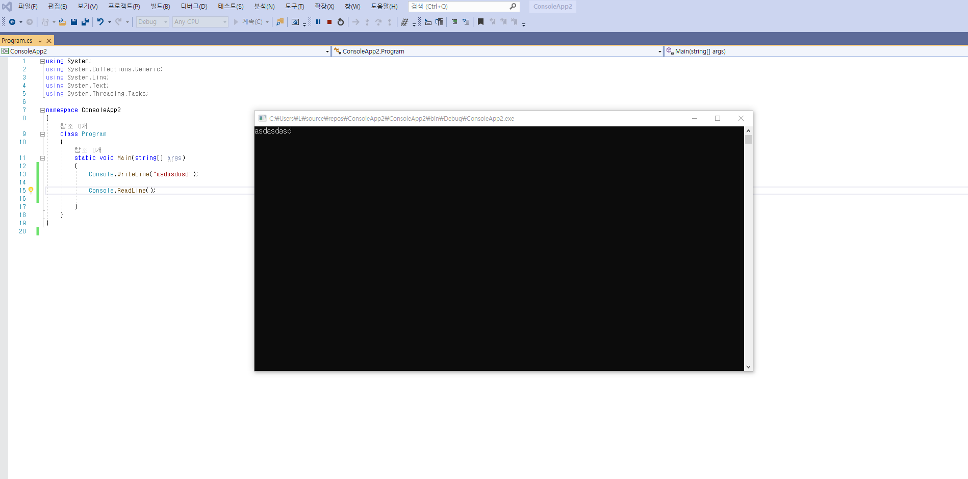 Console.WriteLine("asdasdasd");