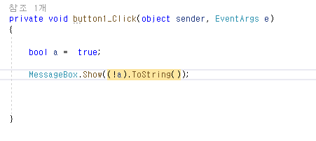 그리고 ! 는 not 을 의미하는데 이연산자는 주로 bool 형식의 변수와 같이 쓰인다.