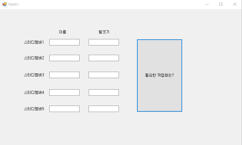 ***숙제 : 위 숙제 같은 형태의 폼을 만들고 필요한 작업화 버튼을 눌렀을때 아래 형태로 출력할것