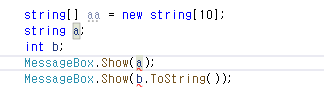 그리고 아래줄에 aa = new string[10]; 라고 써놨는데 이내용은 10개의 데이터를 넣을수 있는 배열로 만들겠다는 의미이다.