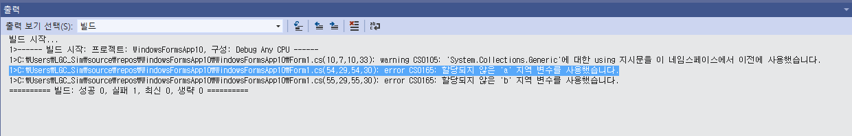 그림1에서 보는거처럼 값을 대입하지않고 변수를 지정할 수 는 있지만 사용하려고하면 그림2와 같이 에러가 발생한다.