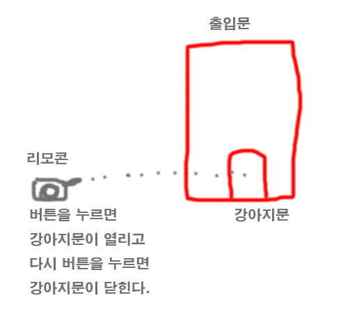 1. 리모콘은 하나의 버튼이 있고 닫혀있을때 누르면 문이 열리고, 열려있을때 누르면 문이 닫힌다.