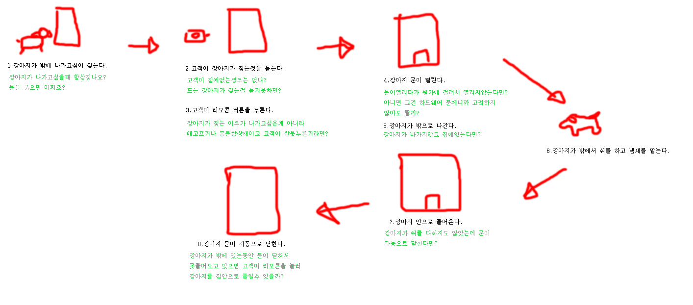 고객은 강아지가 왔다갔다 할수 있는 문을 만들어달라고 하고 우린 만들어줬지만 고객이 마음에 들게 작동하지는 않는것이다.