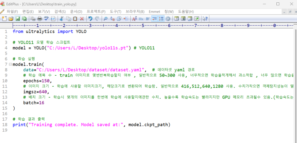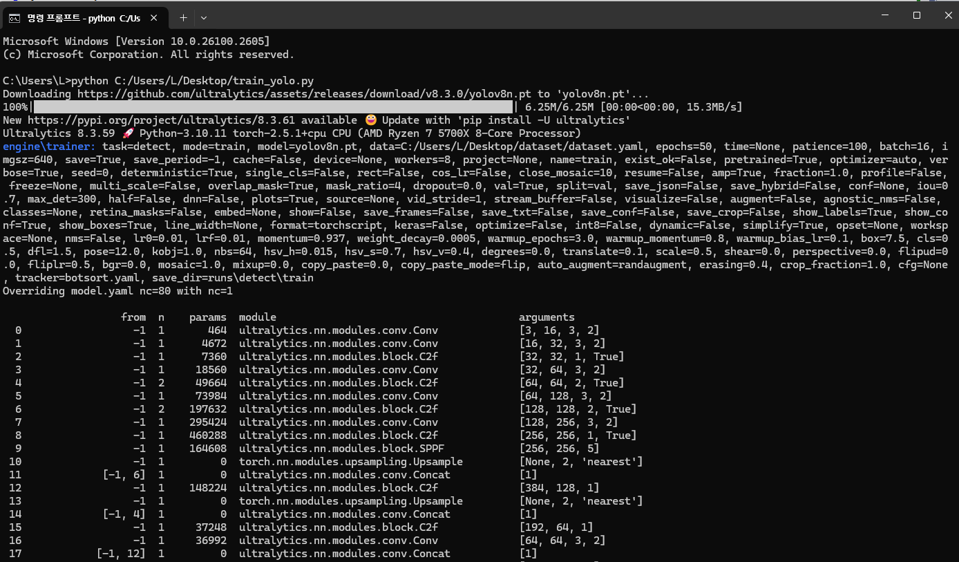 data="C:/Users/L/Desktop/dataset/dataset.yaml", # 데이터셋 yaml 경로