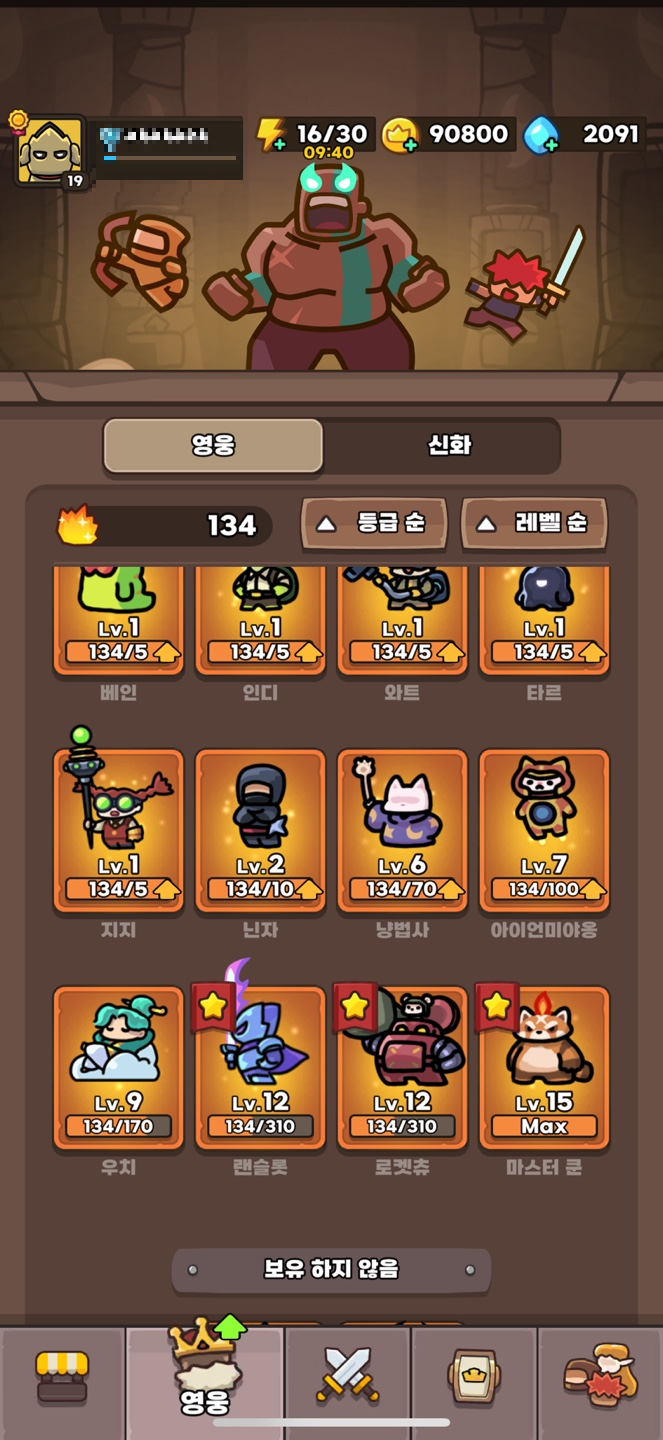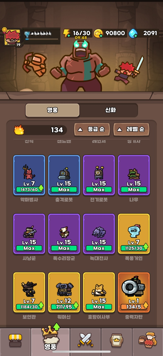 가장 우선적으로 올릴게 영웅들 15레벨이다.