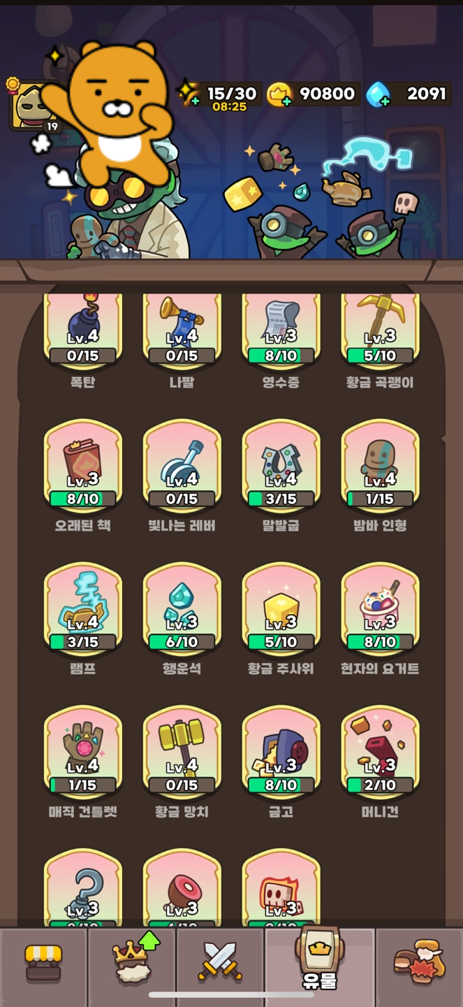 최종적으로는 위와 같이 했는데 내가보기에 필수로 필요한 캐릭터가 랜슬롯12 / 냥법사6 / 우치 6이상 이다.